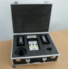 Digitaalinen näyttö päivittyy kolme kertaa sekunnissa, automaattinen pos. ja neg. kentän osoitus, HOLD ja LOW BATTERY –toiminto. Kolmiasentoinen liukukytkin KV/INCH – OFF – V/INCH sekä Sample/HOLD painonappi ja ZERO-säätönuppi. Maadoitus tapahtuu johtavan kuoren läpi tai takaosan 10 mm nepparista. |  | PROSTAT® mittalaitesetti (PFK-100) Kannettava CPM (Charged Plate Monitor) ionisaattoreiden testaamiseen sekä kehon varautumisen ja purkausaikojen mittaamiseen.